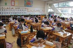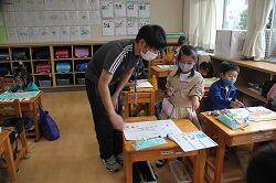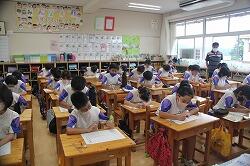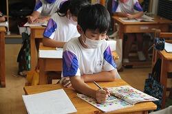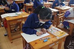 6年の外国語では、修学旅行の思い出を英語で話す学習を行っています。各自が、思い出の場所での出来事を英語でまとめ、今日はスピーチです。文面を見ないで、暗唱する児童も出てきました。発表者以外は、内容を聞き取り、プリントにまとめていきました。そして、上手なところを称賛しあいました。