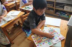 今日は、身の回りにもたくさんアルファベットがあることを学習しました。子どもたちにとっては驚く発見でした。