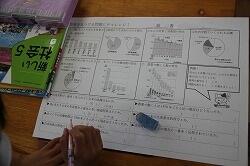 担任がまとめたものを、隣とペアになって確認します。この、友達に説明するという活動で、説明した本人の学力の定着が図られていきます。