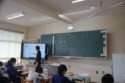 6年生は、算数の立方体の体積の学習をしていました。基本的な技能は全員理解しているので、グループではなく、全体で考えていきます。