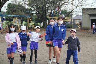 コロナウイルス流行以来、タッチ鬼で遊ぶ姿が見られます。時には学年をまたいで行っています。