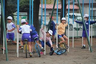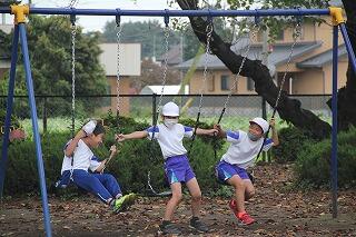台風の影響を受けずにすんだため、業間は子どもたちの声が響き渡りました。その様子をお伝えします。