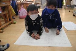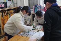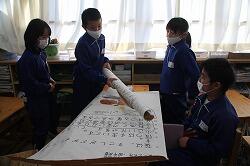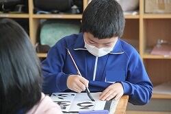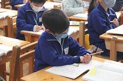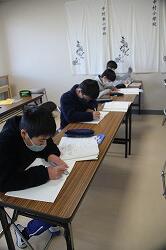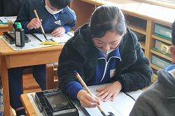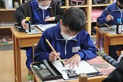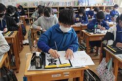 毛筆も、まとめの学習に入ってきました。4文字をバランスよく、そして、とめ はね 曲がり などに注意して清書を行いました。