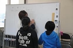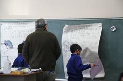 各自課題に取り組み、わからないときは手を挙げて質問、または黒板のところで個別に指導を受けます。