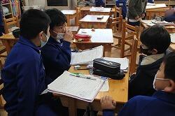 国語では「資料を見て考えたことを話そう」の単元に入りました。ここでは、分かったことを相手に伝える学習ですが、資料を読み取ることが重要になります。例題では6種類の資料が提示され、前回は一つ一つの資料を読み取り、今日は、2つの資料を重ねるとどんなことがわかるかを考えていきました。この読み取りの力は、今求められている大切な力で、大学入試なのでも複数の資料だけが提示され、ここから考えられることを文としてまとめよなどと出題されます。資料を多角的に見る力を養っていきます。