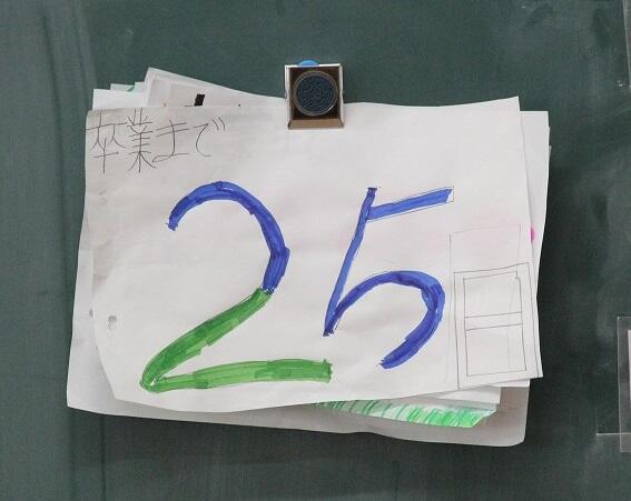 そうです、「卒業まであと25日(学校に来る日)」です。卒業式が目の前に見えるようになってきました。