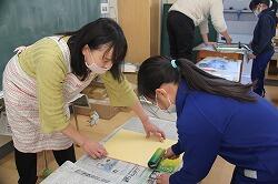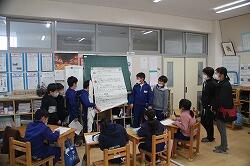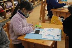 算数は直方体、立方体はどんな図形が組み合わさってできているかを考えていきました。少人数学習で行い、片方は、展開図を考えていきました。もう一つは、各面の形を切り取り、組み合わせて展開図にしていくという方法で学習を行いました。