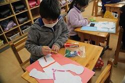 図工では造形を行っています。今日は、ストローを使って動きのあるものを作成しました。ストローを組み合わせていくことで作り上げていきます。途中、担任から、「ここはストローを1/2に切ろう」と。今、算数で学習していることが生かされた瞬間です。子どもたちからは「算数だ」と驚きの声。いろいろな教科とリンクさせていきます。