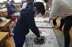 版画の作品が完成し、2年史の廊下は美術館のようです。