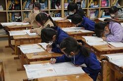 8時試験開始で計算力テストを行いました。本校が目指している基礎学力定着の一環として行っています。問題は、各学年の担任が、子どもたちの不得意としているところを分析して出題しています。