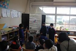 図工では、楽器作りの仕上げを行いました。たたく楽器、はじく楽器等々、いろいろな種類の楽器ができました。そして、子どもたちからは、ゴムを弦にした楽器では「押えるところや、長さを変えると、音が変わるよ。ゴムの太さが違っても音が変わるよ」ここでも、理科につながる発見がありました。