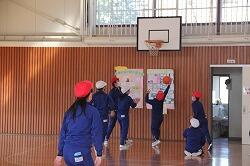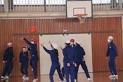 体育では、バスケットボールを行っています。今日は、ドリブルを使わないで、パスだけでつないでゴールに入れるゲームを行いました。ボールを持っている人をアシストできるように、周りの人たちは動いていかなくてはなりません。心を読む展開です。