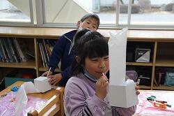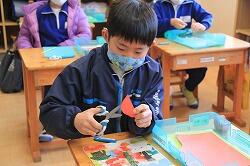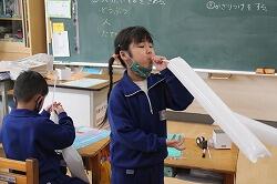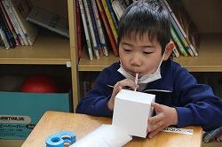 1年生の図工は、風船を膨らまして、その形、そして箱などに入れたりして動物などの作品を作る活動を行いました。びっくり箱のようなものを作ってみたり、箱から蛇が現れたりと、想像を膨らませながら作品作りに取り組みました。