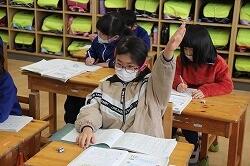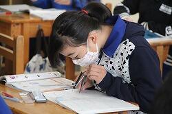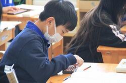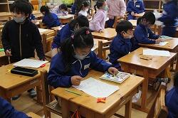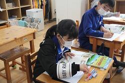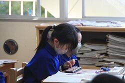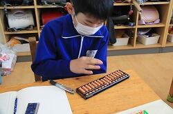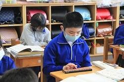 算数の学習は、そろばんを使っての計算練習に入りました。そろばんは日本が生み出した伝統的な計算機です。電子計算機と違うところは、電子計算機は数字を作る(打ち込んでから)+、−を行います。そろばんは、もとにある数に対して、位ごとに数を+ − していきます。ある銀行の方によると、位取りのミスが少ないと言います。子どもたちにとって迷うところの一つが、普通の計算は下位から計算しますが、ここでは上位からになります。さすが子どもたちです。慣れると、リズミカルにはじいていました。
