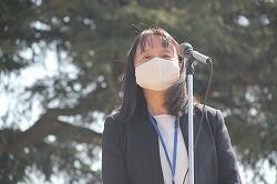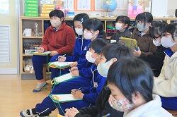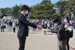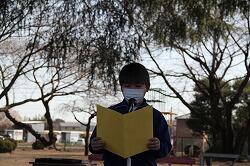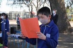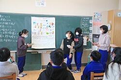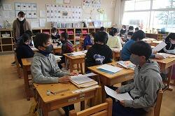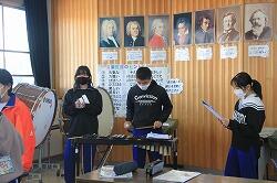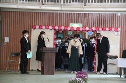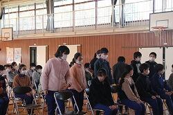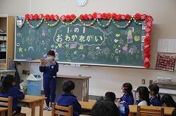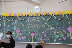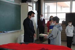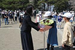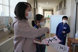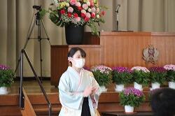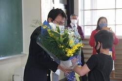 学校を去ってく職員への感謝の作文発表と花束贈呈