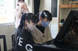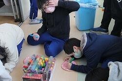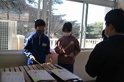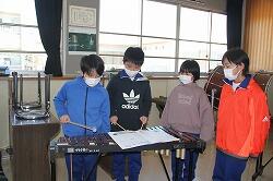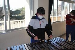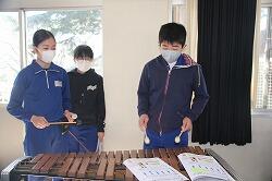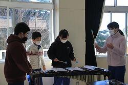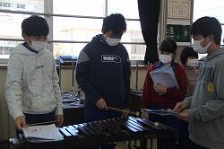 音楽は、マリンバを使った合奏を行いました。各自がいろいろなリズムを刻み、伴奏に合わせて叩くと、きれいなメロディーになることを体感しました。合奏では、全員が同じテンポを共有することが重要です。リズムを叩く人を配置するなど、合わせるための工夫を行いました。
