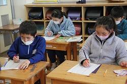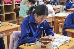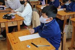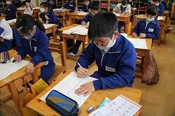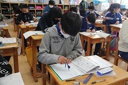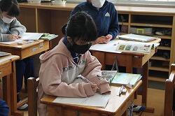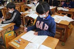 今日は3年の書写学習の総まとめを行いました。これまでに学習した、曲がり方、ぬき方に注意して書きました。