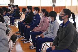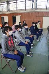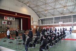 卒業式の練習が始まりました。証書授与の練習を行いました。今年はコロナ禍のため、いつもとは違う座席配置で行います。今日は、目の位置、もらうときの並び方の確認を一つ一つ行っていきました。