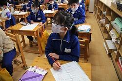 かけ算九九の復習を行いました。かけ算九九をばらばらに印刷したプリントに取り組み、全員が4分以内には書き終えることができました。忘れずに次の学年で生かせるように定着させていきます。