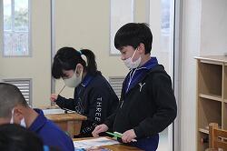 今日の道徳は、岩手県大槌町にある「風の電話」をもとに作られた話を基に「よりよく生きるには」について考える授業を行いました。亡くなった方と話せたらという物語です。もし話せたなら、生きていく力をもらえる、話したいことがたくさんあるので、今の思いを伝えられる、と意見がでてきました。生きていくために、思いをもち続けることは大切であることを学びました。
