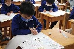 1年生の算数も総まとめを行っています。一人一人、課題に取り組みました。