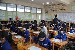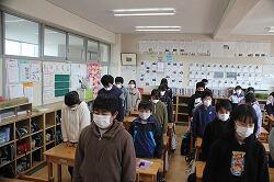 本年もコロナ対策のため6年児童と保護者のみとなります。そこで、5年生の勉強を兼ね、保護者席に5年生に座ってもらいました。5年生には卒業式の雰囲気を、6年生には緊張感を感じてもらうのがねらいです。お互いにいい刺激で、終わったとは両学年から「疲れた」という声が聞かれました。