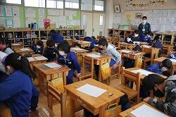 朝の会では、担任から震災について、そして、今日行う予定の訓練、黙とうについての話を行いました。