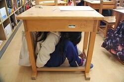 14:05には、どちぎシェイクアウト訓練を実施しました。地震が襲ってきたという想定で行われる訓練です。(5校時が始まったところです)