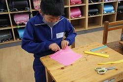 全校生で感謝の気持ちを伝えます。4年生は、卒業生が巣立っていくときにくぐるアーチの制作担当です。