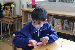 図工はストローを使っての動くおもちゃを制作しています。ストローを動かすことで、どんな動きができるか、そしてどんな形に応用できるか考えながら作品制作に臨ませました。