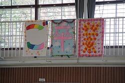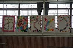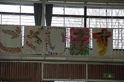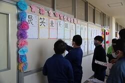 掲示したのは、五年生が考えた、六年生一人一人の人柄を表す漢字一文字です。心を込めて制作しました。