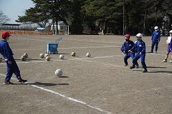 3年生はラインサッカーを学習しています。今日は、パスをつないでいくことを目標に、パス練習、試合を行いました。