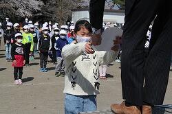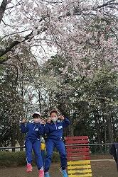 外での修業式。青空、暖かさ、そして満開に近い桜は、一年間を乗り越えた子供たちへの神様からのプレゼントでしょう。
