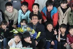 最後に、記念写真撮影。子どもたちも笑顔でありながら、担任との別れに熱い思いの涙を流していました。
