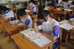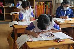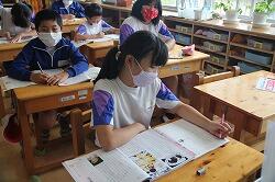 2年生の国語は「聞く 伝える」を学習しています。今日は、カンボジアの学校の様子についての聞き取りを行いました。電子黒板から流れてくる音声を聞き取り、わかったことをメモしていきました。2回目には、大切なことをまとめられました。次回は、そのことに対して自分はどう考えたか、感じたかをまとめ互いに伝え合っていきます。