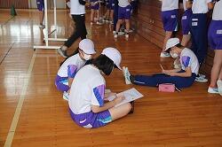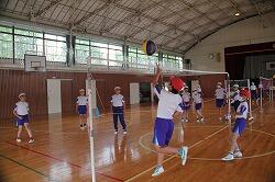 6年の体育はソフトバレーを行いました。ラリーが続くように、ワンバウンドまでOK、3回で相手に返すのを5回までOKという特別ルールで行いました。ボールが柔らかい分、狙ったとこへ返すのが意外にたいへんでした。終わった後は、どこを直したらよいか、振り返りを行います。
