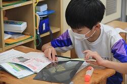 国語では、説明文の読み取りを学習しています。3つの項目を設け、それぞれが書いてあることに対して、項目別に色を変えて線を引いていきました。