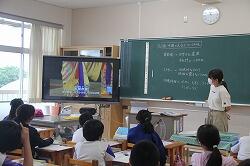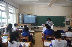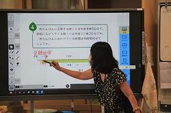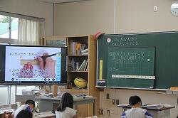 今日は、わり算について学習しました。電子黒板を使うことで、分けるためにはどのようにやっていったらよいか、お互いの考えを発表し、そして聞きながら学びあいました。