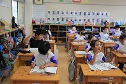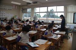 外国語では、各自が自分が行きたい国についての発表会を行いました。今まで学習してきたことのまとめです。行きたい思いを校長、AETに英語で伝えました。発表を見学する児童たちは、真剣に内容を聞き取ろうとしました。緊張感が漲る空間でした。