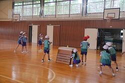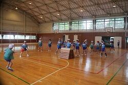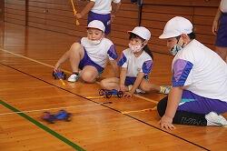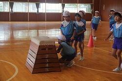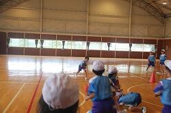 ボール運動で、ドッチボールを行いました。今日は、特別ルールで、各陣地の中央に跳び箱を置きました。それぞれのチーム、隠れるための場所として、防御壁として、考えながら試合に臨んでいきました。