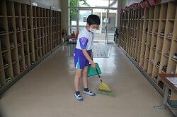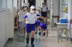 今まで、高学年を中心に暫定的な清掃活動を行ってきました。昨日より通常通りの縦割り背清掃活動を行い始めました。1年生は、見よう見まねで活動を行っていきます。清掃も通常通りとなり、校舎に美しさが戻ってきました。