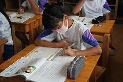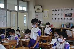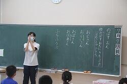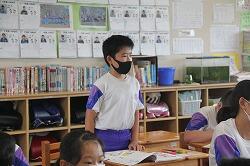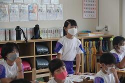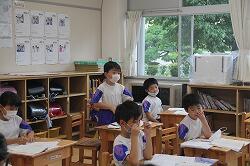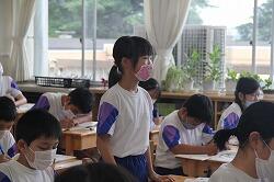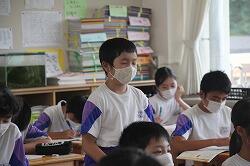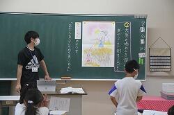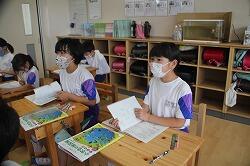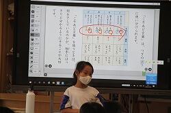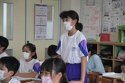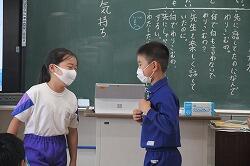 国語では物語文の読み取りを学習しています。今日は、主人公の気持ちを考え、身振り手振りをつけて主人公の会話文を読む学習を行いました。