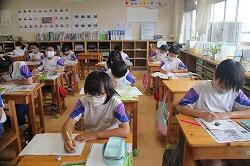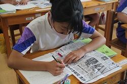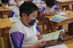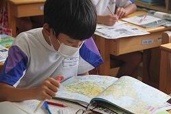 今日は、子供たちに「今、日本で何が起きているのか」を知ってもらうために、新聞の記事を使って考えていきました。記事には、先日の九州の豪雨災害について、降雨の様子や被害の状況について説明してありました。同じ日本の中で、地域によって大きな災害が起きること、地形の違いが災害に結びついていること、そして、そこには多くの被災された方々がいることなどを、新聞から読み取りました。今日の社会科は、子供たちにとって多くのことを考える機会となりました。