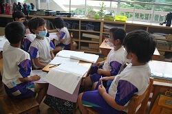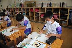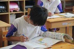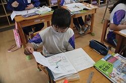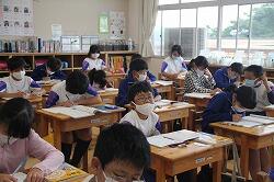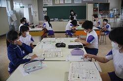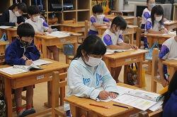 国語では登場人物の気持ちを場面を追って考えていきました。子どもたちも物語をよく読みこんでいて、言葉から、「~じゃないかな」とか、また担任が音読をある場面で止めると「そうだよ。この文だよ。」と意見を交換し合うことで学びを深めていきました。