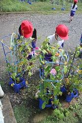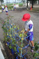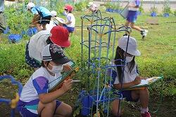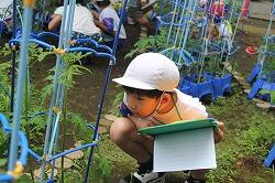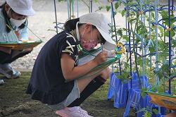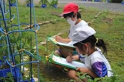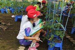 今日は、ミニトマトの観察を行いました。成長を各自記録していきました。「トマトがなっていないのに、洗う前のトマトのにおいがするよ」「葉がざらざらしているよ」など五感で感じることができました。