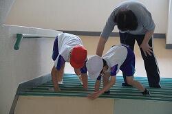 3年の体育はマット運動を行いました。後転では、なかなか勢いをつけることができすに、途中で横転してしまうこともありました。側転では、きれいに演技できる児童の様子を参考に、ポイントをつかみ挑戦していきました。