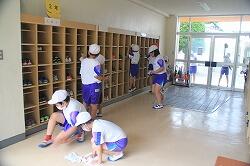 美化委員会では朝の清掃活動を行っています。清掃活動に制限を設けていたため(7/1まで)昇降口の汚れが目立っています。しかし、委員会のおかげで、すっきりとした校内になっています。