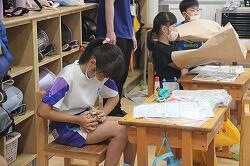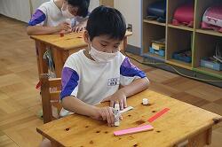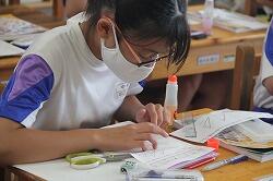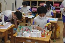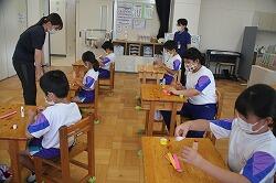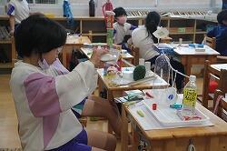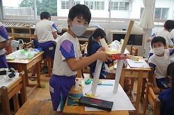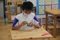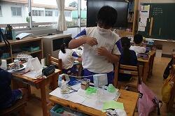 4年の図工は「ゆめのまちへようこそ」を学習しています。本来なら、大きな段ボールを使って、大きな夢の街を作るのですが、「密になる」ため、個人での作業です。遊園地のような街ができてきています。