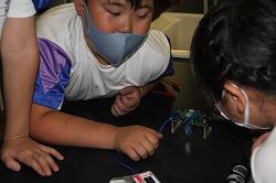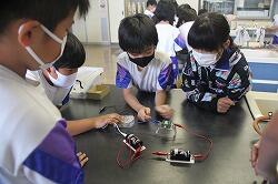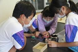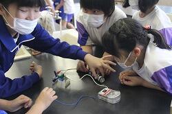 4年の理科は「電気のはたらき」を学習しています。今日は、回路を作り、流れる電流の向きの違いで、モーターの回転の仕方が変わることを簡易検流計を使いながら実験しました。
