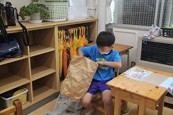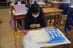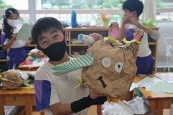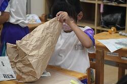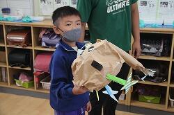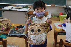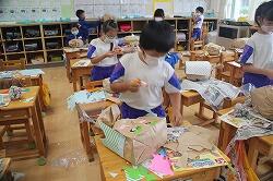 図工は「くしゃくしゃぎゅ」を学習しています。紙の感触を味わい、そこから作品を制作します。新聞紙を丸めたり、新聞紙を入れる袋を折ったりして、作品制作に取り組みました。